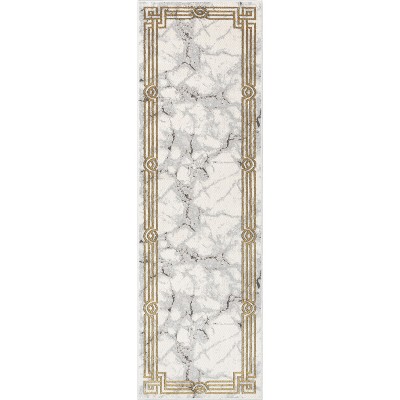 This washable area rug features non-slip backing and low-pile construction. designed for living room and kitchen use. The durable carpet provides decorative floor coverage with practical safety features. Easy maintenance and classic pattern make it use for various home environments.