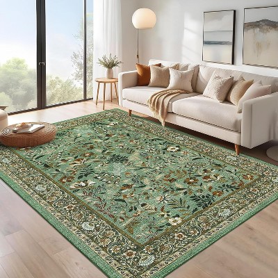 COZONY Washable Area Rug Runner Non Slip Low Pile Carpet Mat, Vintage Distressed Floor Mat for Living Room and Bedroom