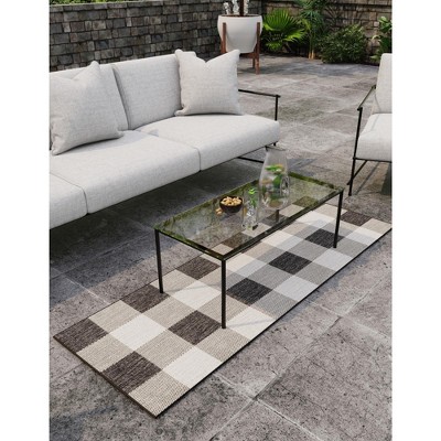 COZONY Washable Checkered Runner Rug, Non Slip Low Pile Soft Carpet for Hallway Bedroom Living Room Kitchen Laundry Room