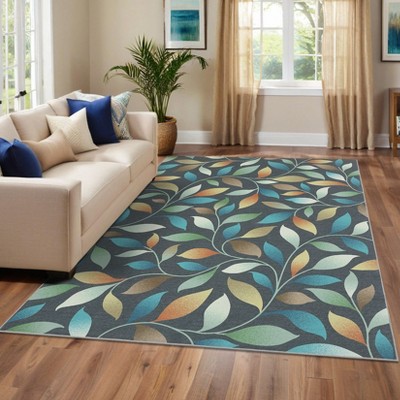 COZONY Washable Floral Area Rug with Non-Slip Backing, Low Pile Foldable Carpet for Living Room and Bedroom