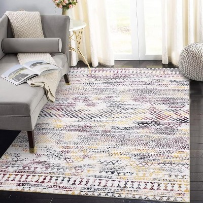This modern abstract area rug combines style and functionality for today's homes. Featuring a low-pile construction, it offers a soft yet durable surface that is resistant to shedding and easy to clean. The secure non-slip backing ensures safety on all floor types, while the machine-washable design simplifies maintenance. Its versatile abstract pattern complements contemporary decor, making it perfect for living rooms, bedrooms, dining rooms, nurseries, and home offices. Additionally, the rug is foldable for convenient storage and handling.