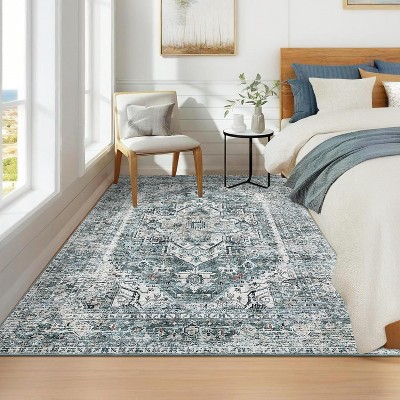 COZONY Washable Modern Abstract Rug with Non-Slip Backing, Ultra-Thin Low Pile Foldable Carpet for Living Room and Bedroom