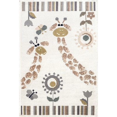 COZONY Washable Natural Leaf Print Rug with Non-Slip Backing, Boho Vintage Distressed Carpet for Living Room and Nursery