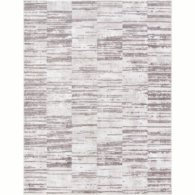 A: The rug showcases a modern abstract pattern that adds visual interest to various interior styles.