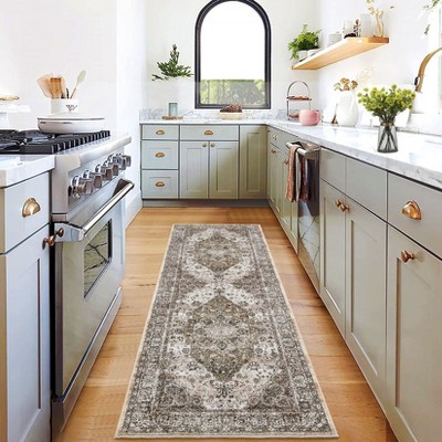 COZONY Washable Vintage Distressed Runner Rug with Non-Slip Backing, Ultra-Thin Low Pile Carpet for Hallway and Bathroom