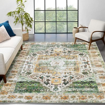 COZONY Washable Vintage Floral Area Rug - Traditional Low Pile Non-Slip Carpet for Living Room & Bedroom