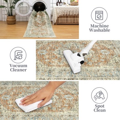 COZONY Washable Vintage Oriental Area Rug, Non-Slip Stain Resistant Low Pile Carpet for Living Room Bedroom Dining Room