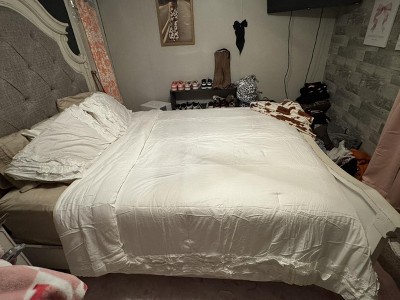 First off the bag came open in the box and then when I put the comforter onto the bed it is paper thin, No Fluff AT ALL! Very disappointing and definitely not worth the cost! I will be returning this!