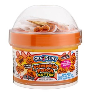 Cra-Z-Slimy Pumpkin Patch is a soft and stretchy butter slime that brings festive fall fun to life! This scented orange and yellow slime features a smooth, buttery texture perfect for squishing, stretching, and swirling. Packed with sparkling glitter, pumpkin-shaped confetti, and 14 adorable pumpkin puffy charms, it's a sensory celebration for Halloween and beyond. Kids will love mixing in the charming add-ins to create their own pumpkin patch masterpiece. Comes in a reusable dome-shaped jar to keep the slime fresh and ready for play all season long.