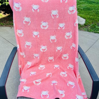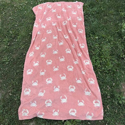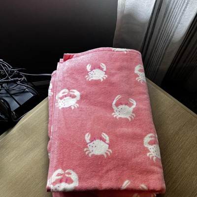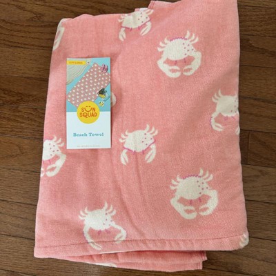 Bring a touch of the oceanside to your beach essentials with the Crabs Beach Towel from Sun Squad™. This coral beach towel is covered with crab print for a fun, beachy look. Made from 100% cotton terry fabric, this lightweight beach towel is comfortable for relaxing by the beach or poolside.