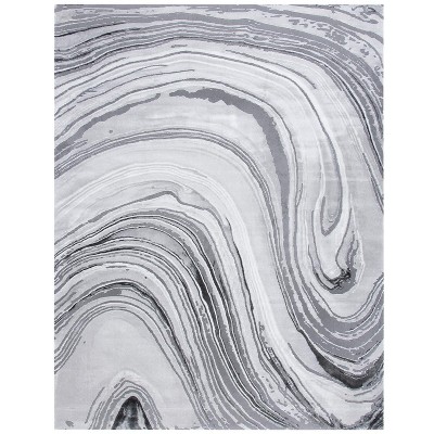 The contemporary style is expressed through fluid, marble-like patterns that resemble natural stone formations, creating a serene yet striking visual impact. Light grey and grey tones intermingle in harmonious contrast, making this rug a versatile centerpiece for any room, whether it be a chic living area, a sophisticated dining room, or a tranquil bedroom.