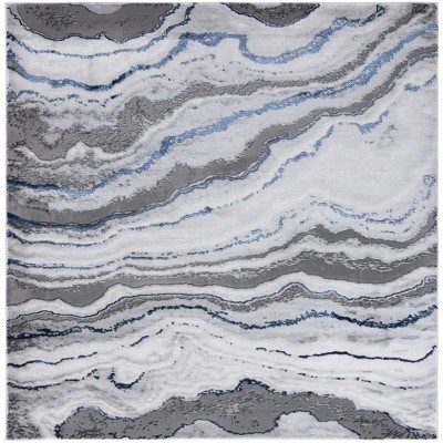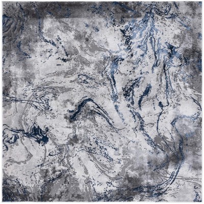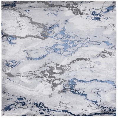 Elevate your living space with the contemporary charm and sophisticated flair of our 6'-7"x6'-7" Square area rug. Designed to perfectly blend with modern aesthetics, this elegant piece showcases a stunning abstract pattern that mimics the unpredictable beauty of marble veining, rendered in serene shades of grey and tranquil blues.