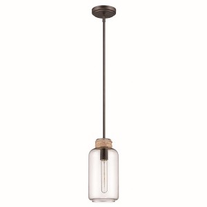 1 Light Mini Pendant with Rods in Espresso Features: Product Type: Indoor Ceiling Lighting - Mini Pendant Finish: Espresso Bulb Included: No Bulb Type: Incandescent Material: Steel, Rope Warranty: 1 Year Material: Glass, Finish Color: Espresso, Width: 6", Height: 55", Length: 6", Hanging Method: Stem, Lamping Type: Incandescent, Number Of Bulbs: 1, Wattage: 60 Watts,