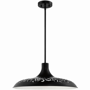 The NEW Pocco 1 Light Pendant from Craftmade features intricate scroll cut outs that allow the light to create playful shadows. Customize the height with included rods. Available in all brushed polished nickel or flat black with white interior. Brushed polished nickel steel - 21.25 inch d Requires 1 medium base, 40 watt bulbs (not included) (3) 12 inch and (1) 6 inch downrod included 1 year limited warranty. Warranty: 1 Year Limited No. of Rods: 4 Canopy Included: Yes Shade Included: Yes Canopy Diameter: 5.13 x 0.98 Rod Length(s): 12 x 0.5