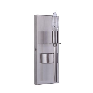 The Larrson interior lighting collection delivers minimalist design with a modern approach to traditional silhouettes. Candle-style single wall sconce Requires 1 candelabra base, 60 watt bulbs (not included) Backplate is 4.4 inch wide x 11 inch high Ada compliant. Warranty: 1 Year Limited 6W Candelabra Bulbs (Not Included) Damp Rated Material: Steel, Finish Color: Brushed Polished Nickel, Width: 4.5", Height: 11", Length: 4.5", Depth: 3.25", Height From Outlet Box: 5.5", Backplate Width: 4.4", Backplate Length: 11", Number Of Bulbs: 1, Wattage: 60 Watts, Dimmable: No, Moisture Rating: Dry Rated