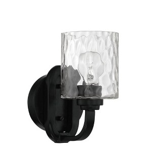 The Collins collection by Craftmade offers a sense of style that cannot be confined. Graceful geometric elements playfully capture the clear hammered glass shades to deliver a warm, welcoming wash of light. Clear hammered glass - 4.75 inchd Requires 1 medium base, 60 watt bulbs (not included) Backplate is 5 inch diameter. Warranty: 1 Year Limited Shade Included: Yes