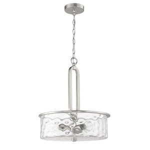The Collins Collection by Craftmade offers a sense of style that cannot be confined. Graceful geometric elements playfully capture the clear hammered glass shades to deliver a warm, welcoming wash of light. Clear hammered glass - 16.5 inchd Requires 3 medium base, 60 watt bulbs (not included) 6' chain and 10' cord included 1 year limited warranty. Warranty: 1 Year Limited Canopy Included: Yes Shade Included: Yes Canopy Diameter: 5.11 x 1