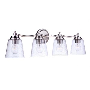 The simple and effortless design of the Tyler collection showcases clear seeded or white frosted glass and casts a warm and beautiful glow in your home. Clear seeded glass - 5.5 inchd Requires 4 medium base, 60 watt bulbs (not included) Backplate is 5.3 inch diameter Extends 7 inch from wall. Warranty: 1 Year Limited Shade Included: Yes
