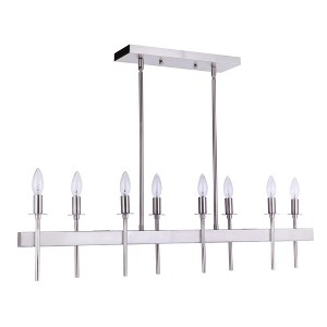 The Larrson interior lighting collection delivers minimalist design with a modern approach to traditional silhouettes. Candle-style island fixture Requires 8 candelabra base, 60 watt bulbs (not included) (4) 12 inch and (4) 6 inch downrod included 1 year limited warranty. Warranty: 1 Year Limited No. of Rods: 8 Canopy Included: Yes Canopy Diameter: 4.72 x 1 Rod Length(s): 12 x 0.5
