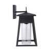 The Becca collection delivers a casual coastal aesthetic with louvered detail reminiscent of resort plantation shutters, clear seeded glass and strong silhouettes finished in Textured Matte Black with our superior UV finish guaranteed for 5 years against 1 Year Fixture/5 Years Finish Shade Included: Yes Dimmable: Yes Material: Glass, Finish Color: Textured Black, Width: 10", Height: 19.13", Length: 10", Depth: 11.13", Height From Outlet Box: 3.25", Backplate Width: 6.5", Backplate Length: 6.5", Number Of Bulbs: 1, Wattage: 60 Watts, Dimmable: No, Moisture Rating: Wet Rated