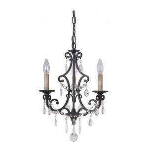 Bentley 3 Light Chandelier in Matte Black With elegant scrollwork and decorative flourishes, Craftmade’s Bentley collection captures the look and feel of hand-crafted wrought iron down to the last meticulous detail. Features: Product Type: Indoor Ceiling Lighting - Chandelier Material: Steel Style: Traditional Finish: Matte Black Outdoor: No Bulb Included: No Safety Rating: cULus Warranty: 1 Year