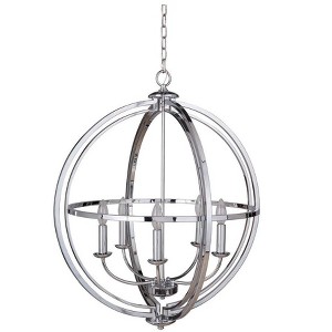 The open globe framework of our Berkeley collection in Chrome provides the illusion of movement around a simple candelabra light source. From Transitional to Contemporary, the Berkeley collection makes a stricking centerpiece. Canopy Included: TRUE Canopy Diameter: 5.12 x 0. Warranty: 1 Year Material: Steel, Finish Color: Chrome, Width: 25.5", Height: 30.13", Length: 25.5", Hanging Method: Chain, Chain Length: 108", Number Of Bulbs: 5, Wattage: 60 Watts, Dimmable: No, Moisture Rating: Dry Rated