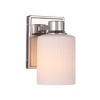 The Bretton collection featuring elegant fluted white glass globes and understated rectangular backplates, is offered in brushed polished nickel and satin brass finishes. The Bretton collection, offered in four sizes, delivers the perfect finishing touch for any powder or bathroom you can create. Frosted White Glass Damp Rated Can be installed up or down Bulb: 1 x 60W Max, Medium Base(Not Included)