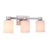 The Bretton collection featuring elegant fluted white glass globes and understated rectangular backplates, is offered in brushed polished nickel and satin brass finishes. The Bretton collection, offered in four sizes, delivers the perfect finishing touch for any powder or bathroom you can create. Frosted White Glass Damp Rated Can be installed up or down Bulb: 3 x 60W Max, Medium Base(Not Included)