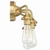 Inspired by the architectural details of iconic bridges, the fluted center column with rivet detail, graceful lines and detailed vanity backplates combine to create the handsome Bridgestone collection by Craftmade. Requires 4 Medium base, 60 watt bulbs 1 Year Mounting Direction: Up/Down Material: Steel, Finish Color: Satin Brass, Width: 22", Height: 7.25", Depth: 6.75", Height From Outlet Box: 2.5", Backplate Width: 5", Backplate Length: 5", Number Of Bulbs: 4, Wattage: 60 Watts, Dimmable: No, Moisture Rating: Dry Rated