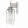 The strong lines and larger scale of the Chicago collection by Craftmade make a bold statement easily at home in any setting. The coordinating clear seeded glass vanities and mini pendant provide excellent lighting options for any bathroom large or small. 1 Year Mounting Direction: Up/Down Shade Included: Yes Material: Steel, Finish Color: Brushed Polished Nickel, Width: 22", Height: 10.25", Length: 22", Depth: 5.75", Height From Outlet Box: 2.63", Backplate Width: 10", Backplate Length: 5.25", Number Of Bulbs: 3, Wattage: 60 Watts, Dimmable: No, Moisture Rating: Damp Rated