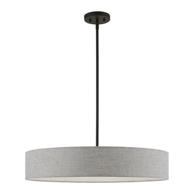 Danbury 4 Light Pendant in Matte Black The Danbury lighting collection is so fashion-forward, calling it a modern design seems quaint. Cylindrical shades of Organza-wrapped acrylic held within a simple frame scatter light with a beautifully refractive sparkle, bringing warmth and excitement to a room in equal measure. Features: Product Type: Indoor Ceiling Lighting - Pendant Finish: Matte Black Bulb Included: No Bulb Type: Incandescent Material: Iron Warranty: 1 Year