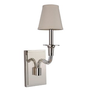 Behold the splendor of our traditional Deran lighting series. These grand instruments of illumination are part of our elite Gallery Collection. Boasting solid brass construction with an elegant polished nickel finish, clear mercury glass arms and linen sh 1 Year Shade Included: Yes Dimmable: Yes Material: Brass, Finish Color: Polished Nickel, Width: 5", Height: 16.25", Depth: 8.75", Backplate Width: 5", Backplate Length: 7.87", Number Of Bulbs: 1, Wattage: 40 Watts, Dimmable: No, Moisture Rating: Dry Rated