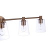 The Emilio Vanity Collection by Craftmade offers bright, clean lighting with transitional appeal and clear glass. Emilio is offered in five sizes and three finishes - brushed polished nickel, flat black and satin brass. Back Plate Height: 5.00 Back Plate Width: 5.00 Shade Included: Yes Material: Glass, Finish Color: Satin Brass, Width: 42", Height: 8", Length: 6.63", Depth: 6.6142", Backplate Width: 5", Backplate Length: 5", Lamping Type: Incandescent, Number Of Bulbs: 5, Wattage: 60 Watts, Dimmable: No, Moisture Rating: Damp Rated