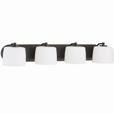 The Grace collection - the perfect name for this graceful family. It's clean lines, flowing frame and white frost glass create a rich look and a wonderful value. Shade Included: TRUE Warranty: 1 Year Material: Glass, Finish Color: Espresso, Width: 21", Height: 8", Length: 21", Depth: 6.5", Backplate Width: 7.88", Backplate Length: 5.13", Number Of Bulbs: 3, Wattage: 60 Watts, Dimmable: No, Moisture Rating: Damp Rated