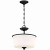 From the delicate contours and smooth flowing lines, to the graceful beauty of the white frosted glass shades, the Gwyneth collection redefines value and style. White Frost Glass Shades (included) Requires 2 Medium base, 60 watt bulbs (not included) Comes with 6' of Chain Convertible from Semi Flush to Pendant Sturdy Steel Construction Suitable for Dry Locations 1 Year Warranty. 1 Year Mounting Direction: Semi Flush/ Chain Hung Canopy Included: Yes Shade Included: Yes Cord Length: 72.00 Canopy Diameter: 5.13 x 1.63 Dimmable: Yes