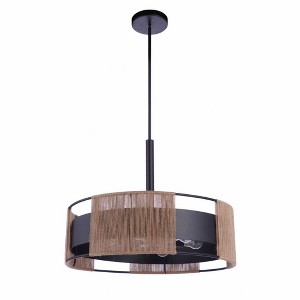 The Craftmade Kensey Lighting Collection embraces the beauty of natural materials mixed with beautifully finished metals. Natural hemp rope wrapped frames combined with classic styled drum silhouettes to create a collection of pendants, semi flushmount and sconce easily at home is a variety of spaces. Downrod Only, 2x12In and 2x6In Downrods Included Damp Rated Requires 6 Medium Base 60 Watt Bulbs (Not Included) 1 Year Limited Warranty