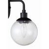 Make a statement with the striking silhouettes of the Que collection. Clear seeded glass globes in updated silhouettes offer a fresh look to brighten your home. Clear Seeded Glass Shade (included) Requires 1 Candelabra base, 40 watt bulb (not includ 1 Year Mounting Direction: Up/Down Shade Included: Yes Material: Glass, Finish Color: Flat Black, Width: 5.5", Height: 10.5", Length: 5.5", Depth: 7.25", Height From Outlet Box: 8", Backplate Width: 5", Backplate Length: 5", Number Of Bulbs: 1, Wattage: 40 Watts, Dimmable: No, Moisture Rating: Damp Rated