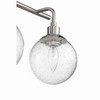 Make a statement with the striking silhouettes of the Que collection. Clear seeded glass globes in updated silhouettes offer a fresh look to brighten your home. Clear Seeded Glass Shades (included) Requires 4 Candelabra base, 40 watt bulbs (not incl 1 Year Mounting Direction: Up/Down Shade Included: Yes Material: Glass, Finish Color: Chrome, Width: 32.5", Height: 10.5", Length: 32.5", Depth: 7.25", Height From Outlet Box: 2.5", Backplate Width: 5", Backplate Length: 5", Number Of Bulbs: 4, Wattage: 40 Watts, Dimmable: No, Moisture Rating: Damp Rated