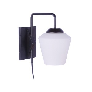 No electrician required! The Craftmade Rive Portable 1 Light Plug-In Swing Arm Wall Sconce in Flat Black with Frost White glass shade features a convenient on/off toggle switch on the backplate, 6' plug in cord and is damp rated. Maximum 40 Watt, Medium Base Bulb (Note Included). White Frosted Glass Shade 6.29" H x 6.5" W On/Off Switch Plug-In Cord Damp Rated