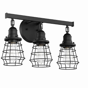 Fashion meets industrial. The open-air design of the metal wire shades showcases the warehouse look of the Thatcher collection. Adding an early electrib bulb will enhance the appeal of the vintage design. Satin Brass Steel Cages (included) Requires 3 Medium base, 100 watt bulbs (not included) Sturdy Steel Construction Suitable for Damp Locations 1 Year Warranty. 1 Year Mounting Direction: Wall mount Shade Included: Yes Dimmable: Yes