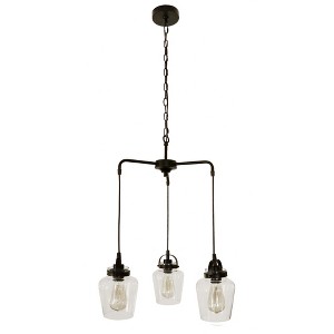 The functional minimalism of the Trystan collection with it's eye-catching silhouettes and clear glass captured globes offers innovative lighting without overwhelming your decor. Clear Glass Shades (included) Requires 3 Medium base, 60 watt bulbs (n 1 Year Canopy Included: Yes Shade Included: Yes Canopy Diameter: 4.75 x 1 Material: Steel, Finish Color: Flat Black, Width: 22", Height: 22", Hanging Method: Chain, Chain Length: 72", Number Of Bulbs: 3, Wattage: 180 Watts, Dimmable: No, Moisture Rating: Dry Rated