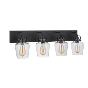 The functional minimalism of the Trystan collection with it's eye-catching silhouettes and clear glass captured globes offers innovative lighting without overwhelming your decor. Clear Glass Shades (included) Requires 4 Medium base, 60 watt bulbs (n 1 Year 11.5 Mounting Direction: Up/Down Shade Included: Yes Material: Steel, Finish Color: Flat Black, Width: 30", Height: 10", Length: 30", Depth: 7.5", Height From Outlet Box: 2.4", Backplate Width: 30.04", Backplate Length: 4.75", Number Of Bulbs: 4, Wattage: 60 Watts, Dimmable: No, Moisture Rating: Damp Rated