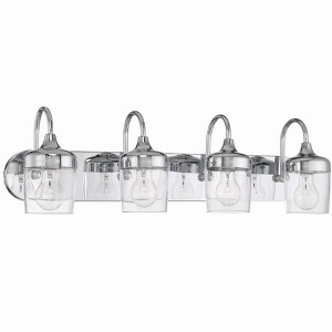The Wrenn lighting collection from Craftmade delivers minimalist style pairing beautifully sculpted lines with clear glass to create the perfect blend of understated elegance able to blend beautifully with any style. Wall Mount Damp Rated Requires 4 Medium Base 60 Watt Bulbs (Not Included) 1 Year Limited Warranty Material: Glass, Finish Color: Chrome, Width: 30", Height: 9.13", Length: 30", Depth: 7.5", Backplate Width: 30", Backplate Length: 4.57", Lamping Type: Incandescent, Number Of Bulbs: 4, Wattage: 60 Watts, Moisture Rating: Damp Rated