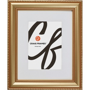 This gold picture frame offers a winning combination of quality, finish and affordability. The Victoria frame series, constructed from solid poplar, features a slightly convex profile. This 1. 375" wide moulding showcases a painted gold finish with ornate detail. The timeless styling of the Victoria is ideal for a wide range of prints and decor.