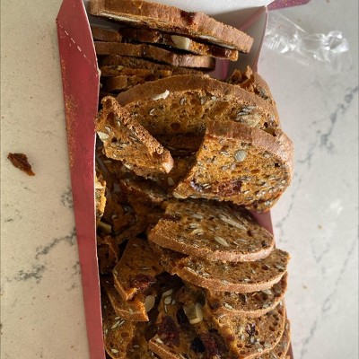 Arrived broken in pieces and not tasty at all. Maybe we will put in a food processor and grind into a topping for a casserole or something, but we are terribly disappointed. Should have believed other negative reviewers, they already stated how bad these crackers are. Taste stale right out of the box!