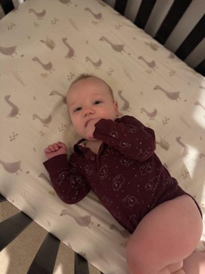 [This review was collected as part of a promotion.] This Charlie farmhouse goose cotton fitted crib sheet is super soft. The design on it is perfect for my baby and goes with his decor in his bedroom. It washes well and fits the crib mattress perfectly. I love that it's 100% cotton muslin and keeps him from getting hot.