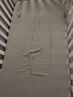 [This review was collected as part of a promotion.] I absolutely love this fitted sheet. It’s muslin material but really thick. I have purchased other sheets with try same material that are so thin. This still seems breathable despite the thickness. It feels so soft. My baby loves it and went to sleep right away the first night. It seems pretty durable but we will see how it holds up after a handful of washes.