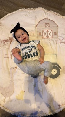 [This review was collected as part of a promotion.] I received crane baby Charlie farmhouse quilted baby play mat complimentary from influenster in exchange for my honest review. This play mat is large and heavy duty/thick. You can use either side. It is more for inside use because it's white on one side. It has a slight cushion to it and lays flat every time it's used.