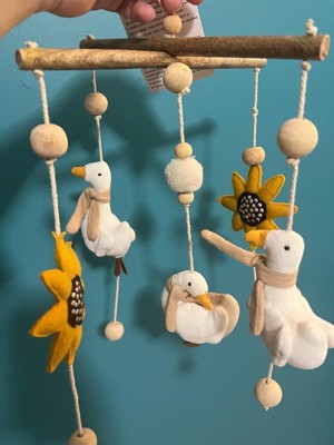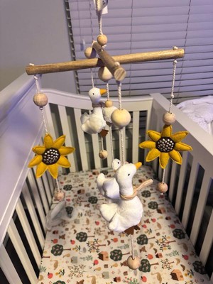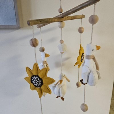 [This review was collected as part of a promotion.] I’m using the Crane Baby Charlie Farmhouse Goose Nursery Crib Mobile and it is absolutely adorable. The design is so sweet in person — the little geese and sunflowers look handmade and give the crib such a cozy, farmhouse vibe. Quality: The quality impressed me right away. The felt pieces are soft but sturdy, the stitching is clean, and the wooden beads and hanger feel solid and well-made. Nothing looks cheap or flimsy at all. Setup: Setup was super simple. It comes mostly pre-assembled, so all I had to do was attach it to my mobile arm. The strings hang evenly, and everything feels well-balanced. It also spins gently without tangling. Maintenance: Maintenance is easy since the materials don’t collect dust badly. I just spot-clean the felt pieces with a damp cloth whenever needed, and it looks brand new. The colors haven’t faded, and the shape stays perfectly fluffed. Durability: So far it has been really durable. The pieces stay securely attached even when I adjust or reposition the mobile. The wood hasn’t splintered, and the strings haven’t stretched out. It definitely feels like something that will hold up through daily use and last through more than one baby. Overall, this mobile is such a cute addition to the nursery — charming, well-made, and easy to care for. I’m really happy I chose it!