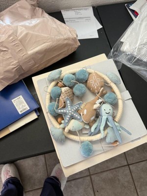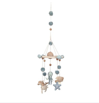 Transform your nursery into an underwater paradise with the Cove Ocean Life Ceiling Hanging Mobile. Featuring 100% cotton handcrafted sea creatures gently swaying above, this mobile captivates your baby's attention and adds a whimsical oceanic charm to the room. A perfect addition to any ocean or nautical theme nursery.